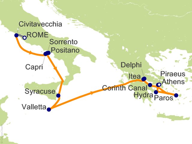 10 Night Best of the Amalfi Coast Corinth Canal Passage and Greek Isles