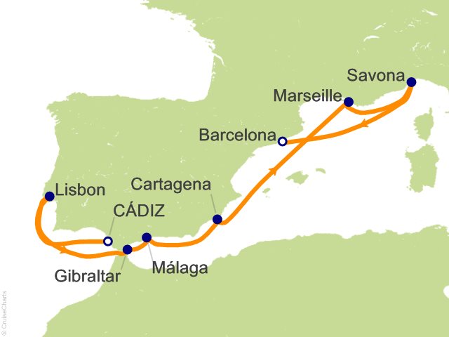 From Cadiz (Seville) to Barcelona