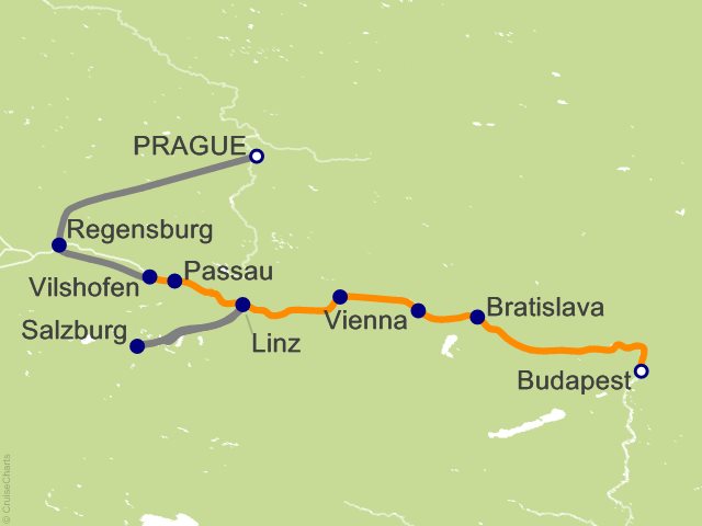 Depart from Prague via motorcoach and enjoy a stop in Regensburg, one of Germany's best-preserved medieval cities and a UNESCO World Heritage Site, which you'll discover on a guided walking tour showcasing the city's architectural highlights, including the Old Town Hall and the Porta Praetoria. After touring Regensburg, continue your journey on to Vilshofen, where you will board your luxury cruise ship. Cap the day off with an exclusive festive Oktoberfest celebration. (B,D) ...