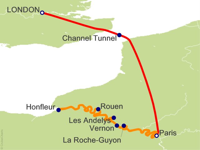 This morning after breakfast, you'll be transferred from your London hotel to St. Pancras station, where you'll join the train bound for Paris. Upon arrival, transfer to your contemporary Star-Ship, Emerald Lumi. This evening, join your fellow guests for a welcome dinner onboard. Later, your Star-Ship will depart Paris and cruise to Vernon during the night. ...