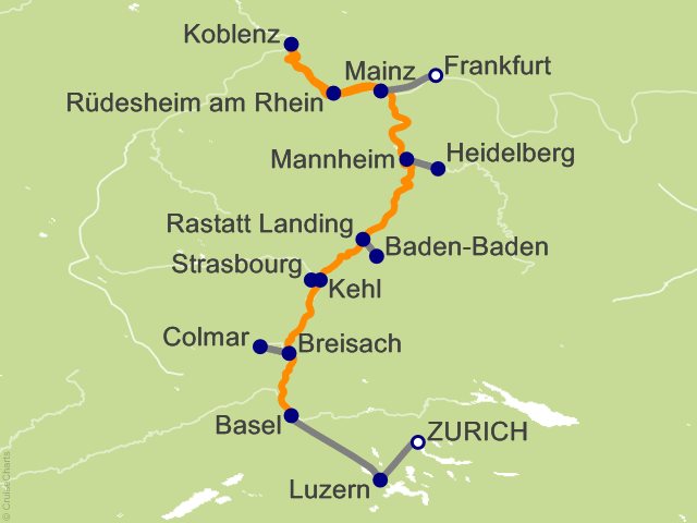 After breakfast, it is time to say farewell to your fellow guests and disembark for your transfer to the airport, taking memories of Petite France and fairy tale-like settings with you. Please book your flight to depart out of Frankfurt after 12 PM.