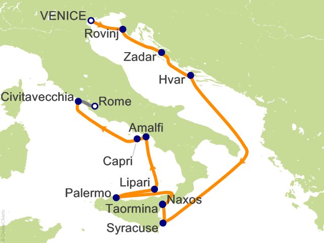 Your Signature Yacht Cruise concludes this morning in Civitavecchia, an ancient port dating back to the second century and the gateway to Rome. Explore the timeless beauty of Rome, the Eternal City, where historic monuments and ornate churches sit alongside busy cafes and famous designer boutiques, and every corner tells a story of empires past. After savoring a final breakfast onboard, it will be time to disembark and commence your onward journey or return home, carrying cherished memories with you. Please book your flight to depart out of Rome after 12 PM. Inclusions: Breakfast.; Notes: Spa treatments and services at additional cost. Daily activities may be subject to change; please consult your Daily Wonder for updates. All drinks onboard, including those stocked in your mini bar, are included, except for a very small number of rare, fine, and vintage wines, Champagnes, and spirits. Specialty restaurants require a reservation, enquire onboard. Experiences onboard the helicopters and submersible are at additional cost, subject to regulatory approval, availability, weight restrictions, medical approval, and weather conditions. Submersible not operational in Europe. The itinerary is a guide only and may be amended for operational reasons. As such Scenic cannot guarantee the voyage will operate unaltered from the itinerary stated above. ...