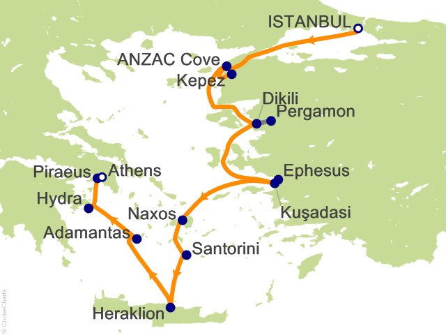 Begin your day with a graceful sail through the legendary Dardanelles Strait, a narrow passage where history and natural beauty converge between Europe and Asia. This narrow passage links the Aegean Sea to the Sea of Marmara and is best known as the site of the Gallipoli campaign in WWI. Take in the marvelous views from the deck as you cruise past rugged shorelines, ancient ruins, and rolling hills. After lunch, you'll arrive in Kepez, ready to explore this charming seaside town. Set on the eastern coast of the Dardanelles, this popular destination comes steeped in history and famed for its culture and culinary traditions. Kepez also offers numerous outdoor pursuits, including hiking and cycling in the surrounding parks and verdant forests, or simply relaxing on the enticing beaches. Inclusions: Breakfast, Lunch, Dinner. ...