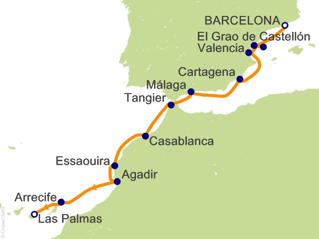 Go ashore in Arrecife, the capital of Lanzarote, and venture into Timanfaya National Park to witness volcanic peaks and craters shaped by eruptions as recently as 300 years ago. Explore the Castillo de San Gabriel, a 16th-century fortress set on a small island in Arrecife's harbor and built to defend against pirate attacks. Explore the Museo de la Historia de Arrecife inside the castle walls to uncover the city's pre-Hispanic past and the unique natural history of the island. ...