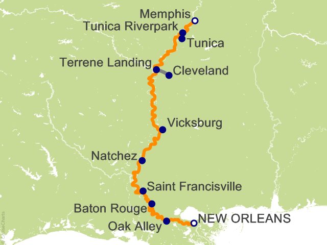 Get ready to feel the vibrant soul as you cruise to Memphis, Tennessee. This historic gem boasts a skyline that dances along the river, lined by sprawling oak trees and historic landmarks honoring its storied past. Feel the rhythm of the city through legendary Beale Street, alive with the sounds of blues and jazz. Explore Graceland, the iconic home of Elvis Presley, and immerse yourself in the legacy of the King of Rock 'n' Roll. While you're here, don't miss out on the mouthwatering BBQ this city is known for. ...