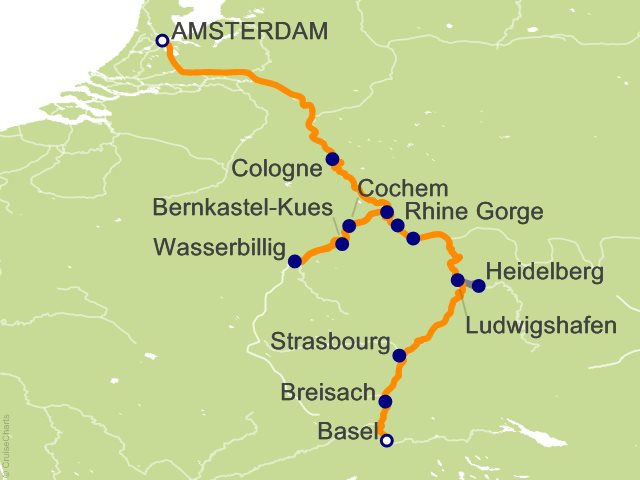 You have a choice of several excursions, depending on your interest. Visit Heidelberg, a perfectly preserved medieval city nestled in the Neckar River Valley along Germany's Castle Road. Alternatively, relive a bygone era on an excursion to the glorious Schwetzingen Baroque Palace. Tour this splendid palace furnished with over 800 exhibits. You can also hike the historic Philosophers' Path along the Neckar River or bike to the charming town of Ladenburg and glide past its half-timbered architecture. (B,L,D) ...