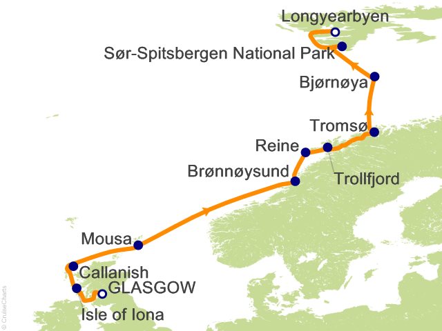 Set sail for southwest Spitsbergen, immerse yourself in this environment unlike any other and explore its unexpected riches. In this natural sanctuary, the polar light combines with the changing weather of the Arctic, a big blue sky, the horizon scattered with clouds, the enveloping mist erasing the border between the land and the sea. Follow in the footsteps of the first explorers and admire the majestic fjords and glaciers sculpting the breathtaking landscapes, their icy waters shimmering beneath the midnight sun. The fjords, veritable cathedrals of ice, reveal their millennial secrets, while the glaciers, like sleeping giants, move slowly towards the sea, setting free sparkling icebergs. On the water, you might spot belugas and rorquals, while on the shores, seals and Arctic foxes add a touch of mystery to this living tableau, where the steep cliffs become breeding grounds for thousands of seabirds, like guillemots. Southwest Spitsbergen is an ode to nature in its rawest and purest form. ...
