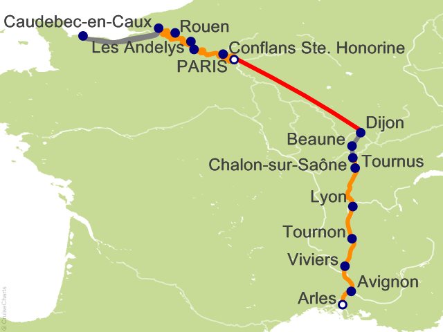 Welcome to France. Your Suite Ship is Ready for Boarding. Flights into Paris must arrive by 2:30 pm. Guests must be on board ship by 5 pm. Your day is free to explore the world's most romantic city before starting your cruise on the Seine. Get acquainted with the City of Light today with some shopping, strolling, or with a croissant and cafe au lait to watch the world go by amid the Parisian cityscape. (Dinner) ...