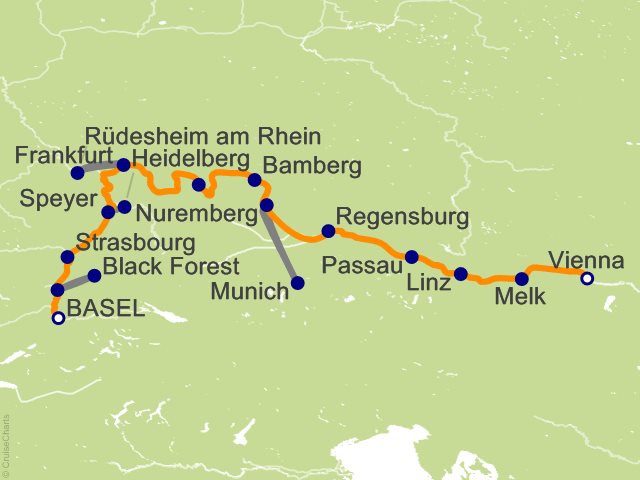 This morning disembark the vessel which has brought you to Nuremberg and drive to Munich. Return to Nuremberg in the late afternoon and embark on the ship which will take you to Vienna. (Breakfast, Dinner)