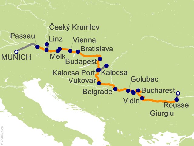 Welcome to Munich, where you will be greeted by one of the Emerald Cruises representatives and transferred to your contemporary Star-Ship in Passau. A warm welcome awaits you from the captain and crew, and this evening, you'll join your fellow guests for dinner onboard. Please book your flight to arrive into Munich prior to 2 PM. ...