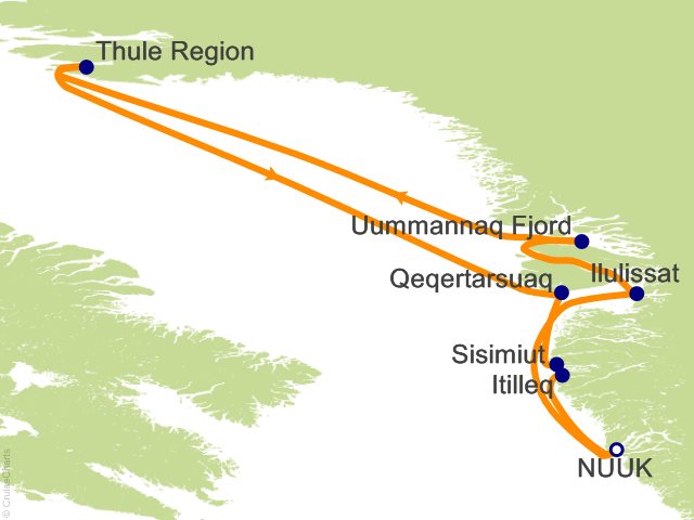 Entering through the gateway to the north. Greenland's Far North begins beyond the Nuussuaq Peninsula. Here, life moves at the rhythm of the Arctic - unhurried and guided by the elements. This rugged, beautiful land has drawn people for over 4,000 years. Early settlers navigated its coastline and carved out a life in conditions few could endure. Today, archaeological sites stand as quiet markers of their resilience, including the famous Qilakitsoq mummies discovered in this very region. Potential landings may include visits to small, remote communities like Uummannaq, watched over by its striking heart-shaped mountain, or Ukkusissat. Weather and ice permitting, we'll explore the Qilakitsoq site, cruise into secluded fjords, or step ashore to take in Greenland's raw Arctic landscapes - always ready to adapt, as nature allows. ...