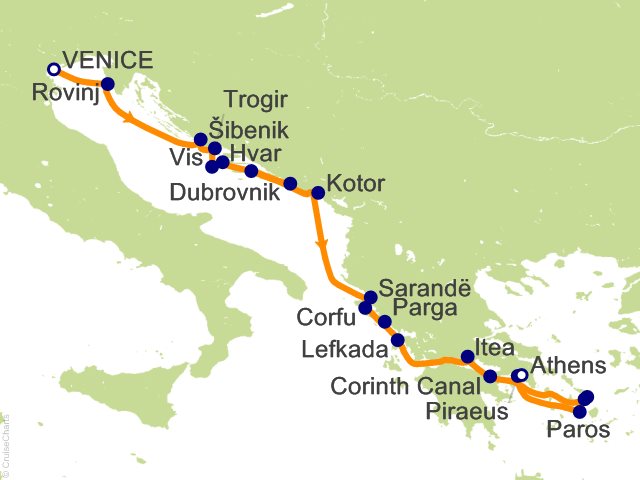 Sarande is a popular coastal town nestled on a crescent-shaped bay in Albania. This once sleepy fishing village welcomes with a bustling seaside promenade and pebbled beaches. Its relaxed atmosphere makes it a perfect base for exploring the nearby ancient ruins of Butrint, a UNESCO World Heritage Site renowned for its archaeological significance. From Sarande, you'll journey across the Straits of Corfu to one of Greece's largest and greenest islands, Corfu, alluring with sandy coves and rugged, verdant hills studded with olive, cypress, and citrus trees. ...