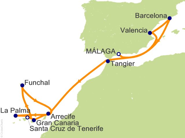 P&O Cruises Europe Cruise, 18 Nights From Malaga, Azura, December 28, 2027 | iCruise.com