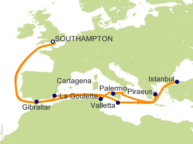 P&O Cruises Mediterranean Cruise, 21 Nights From Southampton, Aurora, August 19, 2026 | iCruise.com
