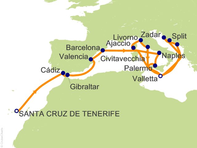 P&O Cruises Mediterranean Cruise, 27 Nights From Santa Cruz de Tenerife, Azura, March 19, 2027 | iCruise.com