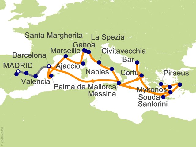 Sightseeing with a local guide feature the Columbus Monument, elegant tree-lined Ramblas, Plaza de Cataluna, and Paseo de Gracia. Admire the spectacular Sagrada Familia, Gaudi's masterpiece, and enjoy a panoramic view of the city and harbor from Montjuic hill. Visit the Gothic Quarter. Tonight, join your tour director and traveling companions for a farewell dinner at a local restaurant followed by a traditional flamenco show. Overnight at a Barcelona hotel. (B, D) ...