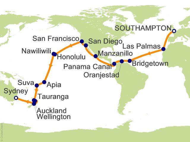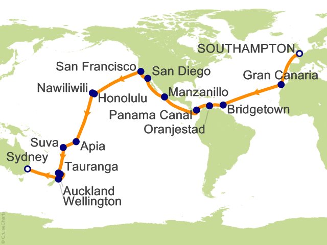 P&O Cruises Australia / New Zealand Cruise, 49 Nights From Southampton, Arcadia, January 6, 2028 | iCruise.com