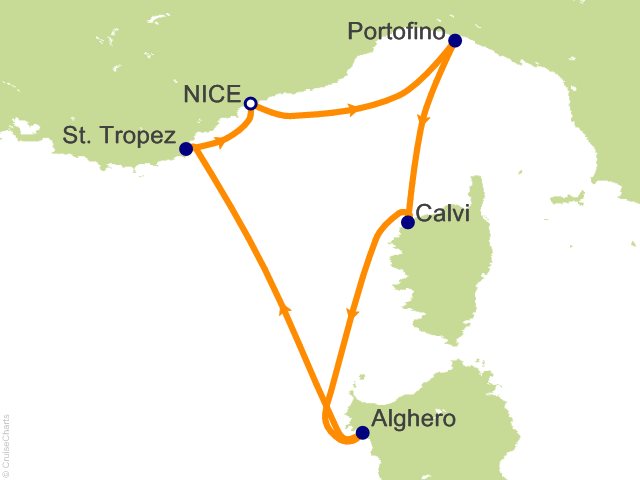 Cross into Italy and the island of Sardinia, sitting off the west coast of the mainland in the Tyrrhenian Sea. The charming city of Alghero is on the island's northwestern tip and is known for its gold sea walls, built in the 16th century. White sandy beaches, crystal clear water, and blissful climate make it one of the Sardinia's most popular resorts. Alghero's culture is a fascinating blend of Spanish and Italian (the official language is Catalan) and you'll see it in the architecture, lifestyle, and cuisine. Scenic Freechoice: Villages of Sardinia & Coddu Vecchiu Giants' Tomb: Embark a scenic walk through San Pantaleo and the ancient Giants' Tomb at Coddu Vecchiu, ending with a relaxing stop in Baja Sardinia. Sardinian Wine Tasting: Set off from Porto Cervo for a scenic drive to the charming village of San Pantaleo, nestled among Sardinia's granite peaks. Then visit a local estate for a guided tasting of regional wines before a relaxing return through the countryside. Tour of Alghero & Surroundings: Discover the charm of Alghero, exploring its historic old town with cobblestone streets, Catalan-Gothic architecture, and a picturesque harbor. Explore the surrounding landscapes, enjoying coastal views and local culture. Offshore: 8 AM-2 PM. Inclusions: Breakfast, Lunch, Dinner. ...