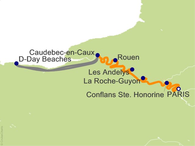 Heroic Bravery on Normandy Beaches and White Cliffs of Normandy. Enjoy onboard live entertainment after dinner, while sailing to Rouen. (Breakfast, Lunch, Dinner)