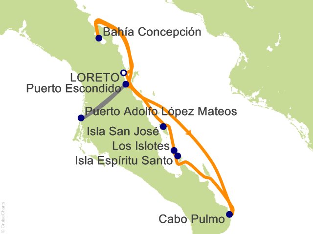Venture south to discover the gems of the southern Gulf. These islands and surrounding waters are celebrated for their conservation stories, marine life, and the many thrilling experiences on offer. Some of the locations we may visit or enjoy by Zodiac include: Cabo Pulmo National Marine Park: Set out to snorkel the pristine reefs of Cabo Pulmo National Marine Park, one of the most successful national marine parks in the world. Chat with locals about their advocacy to protect this unique place, including a cessation of fishing to protect the reef. Isla Espiritu Santo: A national park as well as UNESCO World Heritage Site with volcanic rock formations, scenic beaches, and coral reefs. This magical island offers excellent hiking opportunities and crystal-clear waters for snorkeling. It's a popular destination for researchers monitoring sea turtles. Los Islotes: Located at the northern tip of the UNESCO Biosphere Reserve, Los Islotes are largely inaccessible to people and home to a large colony of sea lions. Conditions permitting, we'll anchor off the rocky island where we don flippers, a mask, and snorkel (which are provided) and swim with these curious inhabitants. Isla San Jose: One of the larger islands in the Gulf of California, San Jose offers several landing possibilities depending on conditions and the whim of the moment. Photograph the ochre cliffs of the island's eastern shore, hike an enchanted, cactus-laden arroyo, or visit the abandoned salt works to the west. Discover rare wildlife among desert islands. ...
