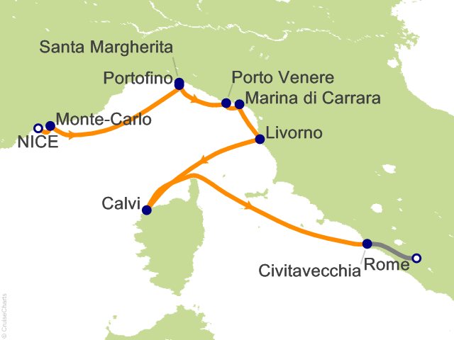 Your luxurious yacht cruise returns to Italian shores and concludes in Civitavecchia, the main seaport for the dynamic capital of Italy, Rome. From here, you'll be transferred to the airport for your return flight home or to continue your holiday. Please book your flight to depart out of Rome after 12 PM. ...
