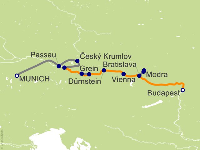 Tour begins: 5:30 PM. A transfer is included from Munich International Airport directly to your riverboat; flights arriving today should arrive no later than 1 PM. Settle in aboard ship and then meet your fellow river travelers this evening at a welcome cocktail reception followed by dinner in the Compass Rose. Your riverboat sets off along the Danube this evening. ...