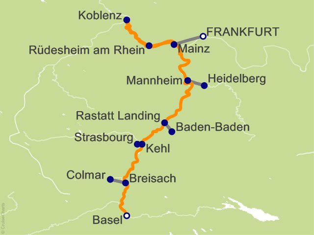 Welcome to Frankfurt, where you will be greeted at the airport and transferred to your contemporary Emerald Cruises Star-Ship in Mainz. This evening, join your fellow guests for dinner onboard. Please book your flight to arrive into Frankfurt prior to 2 PM.