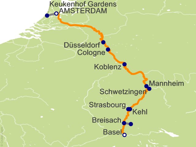 Welcome to Switzerland. Basel graces the banks of the Rhine River and is known for its high concentration of museums, showcasing everything from contemporary art to scientific achievements. After breakfast, it's time to bid farewell to your Star-Ship and fellow guests as you transfer to the airport, taking memories infused with vibrant tulip gardens with you. ...