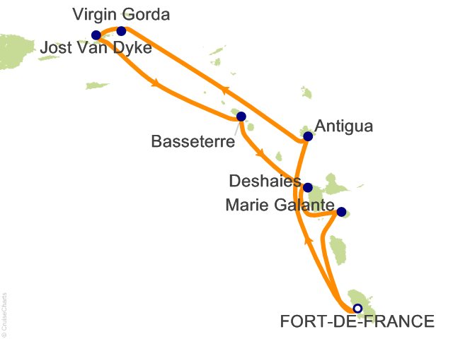 During your cruise, discover the pearl of the British Virgin Islands, said to have been named after a fearsome Dutch pirate from long ago. The hilly landscape offers travellers beautiful wild expanses lined with immaculate beaches where the breeze gently caresses the coconut palms. In this slice of heaven with crystal-clear waters, you will be able to enjoy the lively atmosphere of White Bay. As for the wildlife, iguanas, mongooses, pelicans, and blue herons have taken up residence on these islands, much to the delight of the passengers who love a good holiday snap! ...
